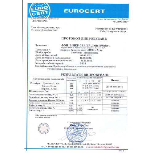 Основні характеристики Паливні брикети RUF 10кг/уп