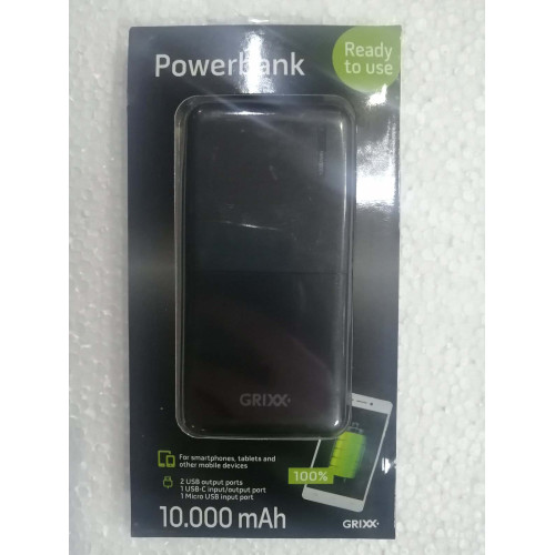 Powerbank (Повербанк) GRIXX 10000 mAh, кабель USB-USB-C в комплекті
