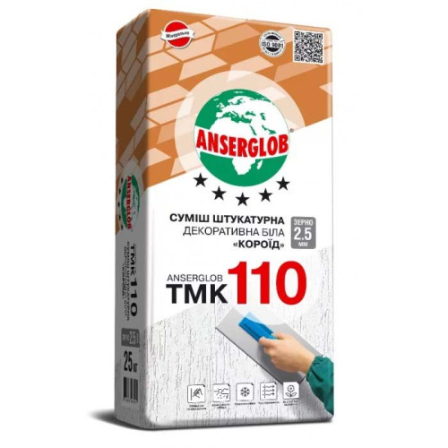 Основні характеристики Штукатурка декоративна "Короїд" Anserglob (Ансерглоб) TMK-110 зерно 2мм біла 25кг
