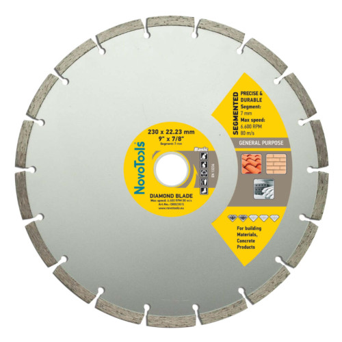 Основні характеристики Алмазний диск відрізний NovoTools Basic Сегмент 230х7х22,23 мм