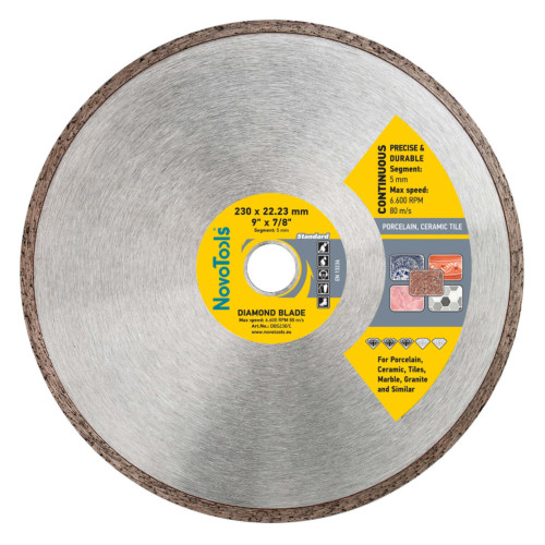 Основні характеристики Алмазний диск відрізний NovoTools Standard Кераміка 230х5х22,23 мм